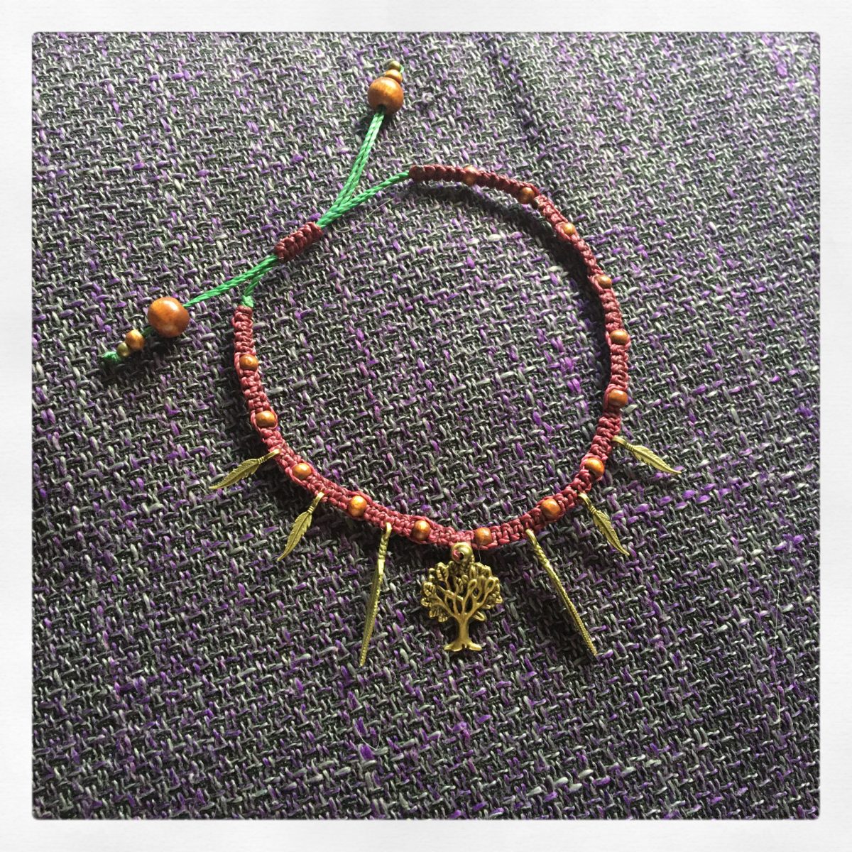 Es ist sicher nichts Mittelalterliches und weit entfernt von Authentizität, was unser Lagerleben betrifft. Aber durch die Corona-Einschränkungen und das Daheim-bleiben habe ich ein neues lieb gewonnenes Hobby gefunden. Mich hat das Makramee-Fieber gepackt und ich knüpfe momentan hübsche Wraps für die Haare – ob für offenes Haar oder für Dreadlocks, es schaut immer irgendwie gut aus, wenn etwas Haarschmuck im Haar ist. Passend dazu gibt es auch hier und da Armbänder oder Fußkettchen. Sogar Halsketten habe ich schon erstellt.