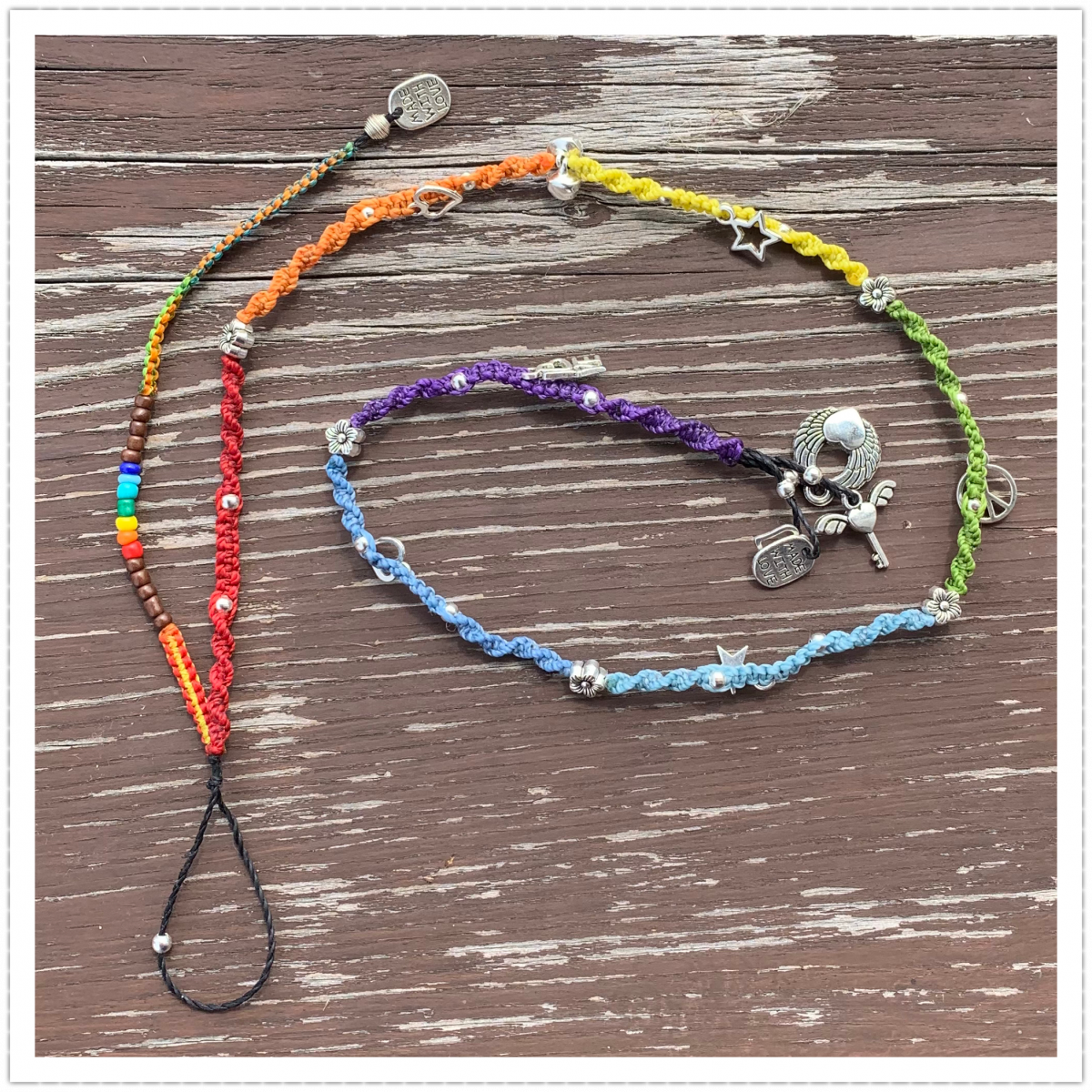 Und da es so vielen auf Instagram und Facebook schon gefallen hat, stelle ich hier mal meine Anhänger und Accessoires vor, die in den Wraps eingearbeitet werden können. Dazu folgt einfach dem folgenden Link und ihr findet immer aktuelle Accessoires und Makramee-Schmuckstücke.