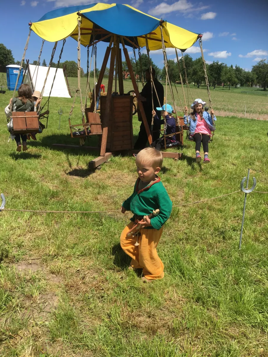 Der kleinste Sohn der Sippe ist Mathi Svenson und genießt die Zeit im Freien in vollen Zügen. Mit gerade noch 3 Jahren erlebte er seinen ersten Mittelaltermarkt in Großerlach und seither ist er nicht mehr zu halten. Er ist immer da, wo auch andere Kinder sind, hilft gern bei allem mit und auch Regen oder Sturm vertreibt ihm nicht die Lust, an frischer Luft und barfuß durch das Leben zu laufen.