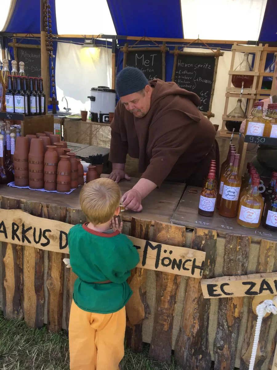 Der kleinste Sohn der Sippe ist Mathi Svenson und genießt die Zeit im Freien in vollen Zügen. Mit gerade noch 3 Jahren erlebte er seinen ersten Mittelaltermarkt in Großerlach und seither ist er nicht mehr zu halten. Er ist immer da, wo auch andere Kinder sind, hilft gern bei allem mit und auch Regen oder Sturm vertreibt ihm nicht die Lust, an frischer Luft und barfuß durch das Leben zu laufen.