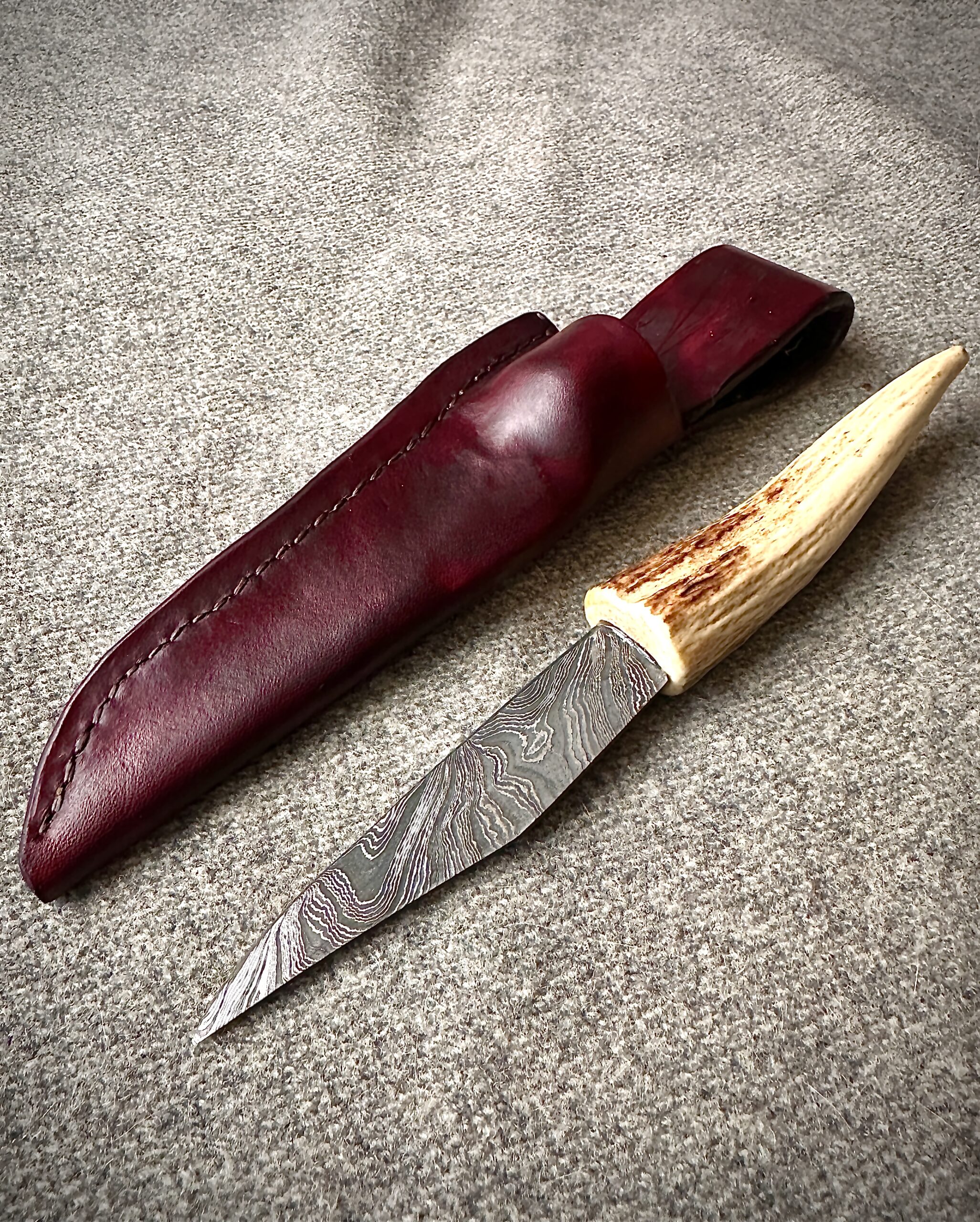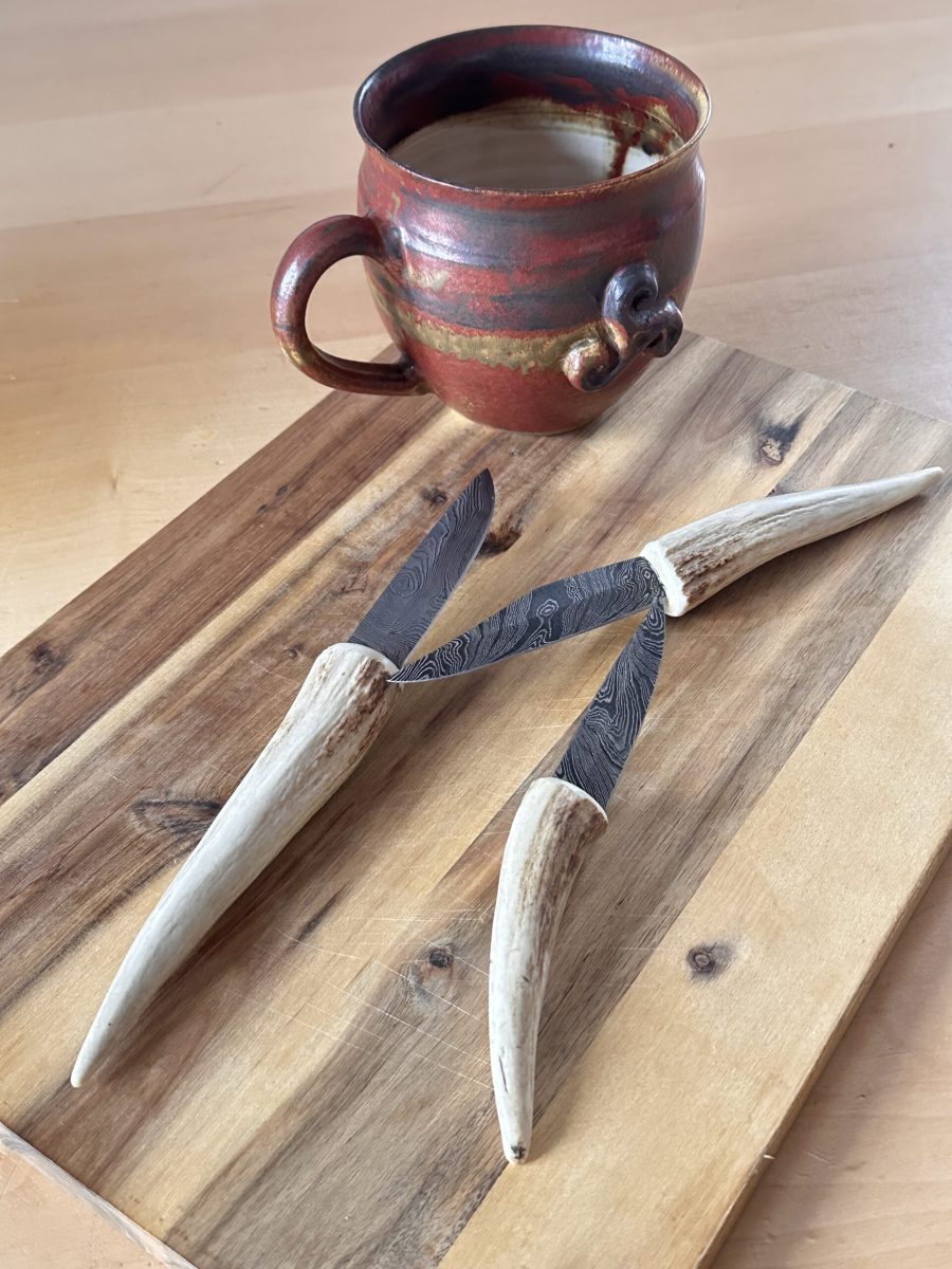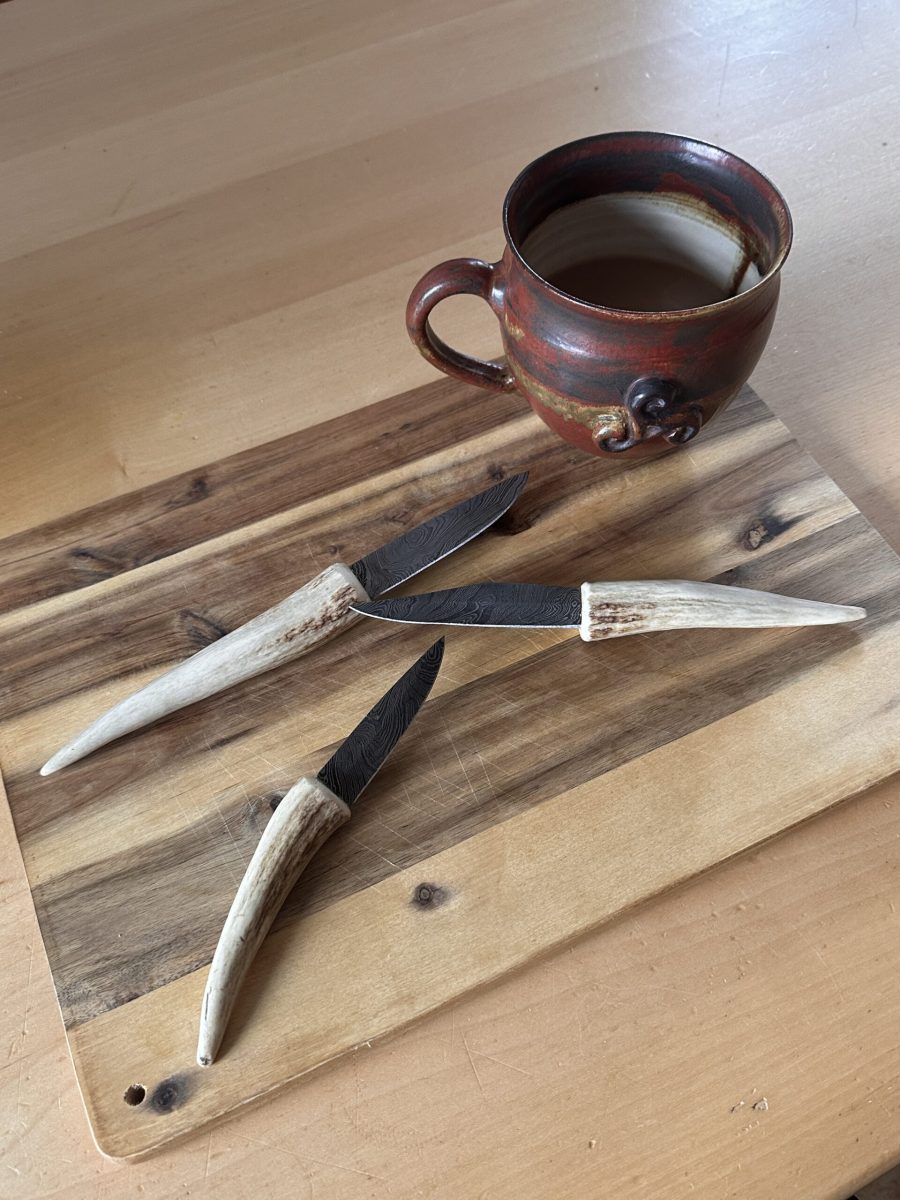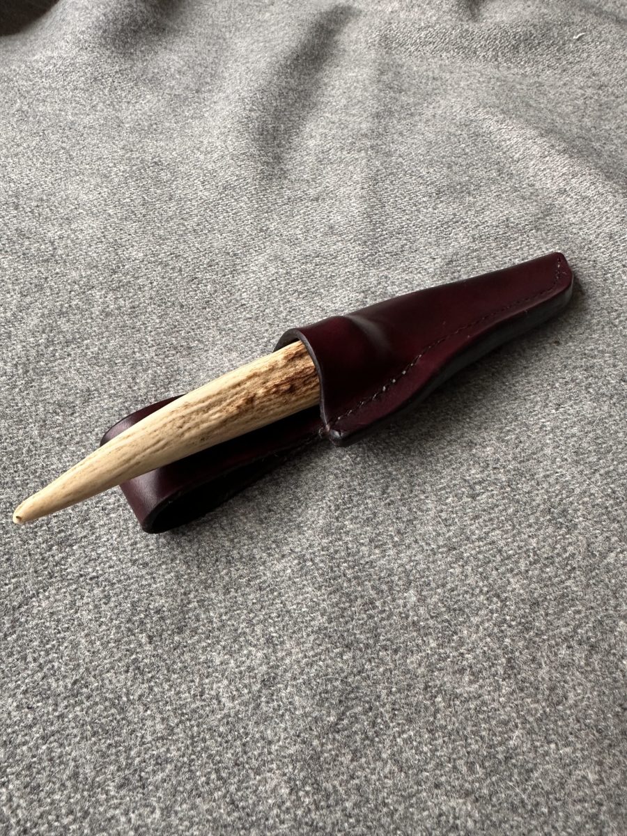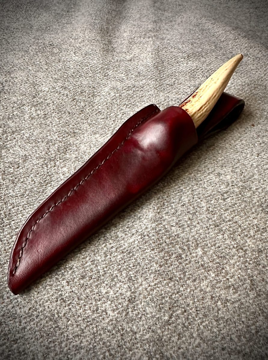 In der letzten Zeit hat sich Sven einigen Messern gewidmet. Entweder hat er neue Messerscheiden gefertigt, oder er hat gleich ein Messer mit Geweih-Griff gefertigt und die passende Messerscheide gleich dazu.