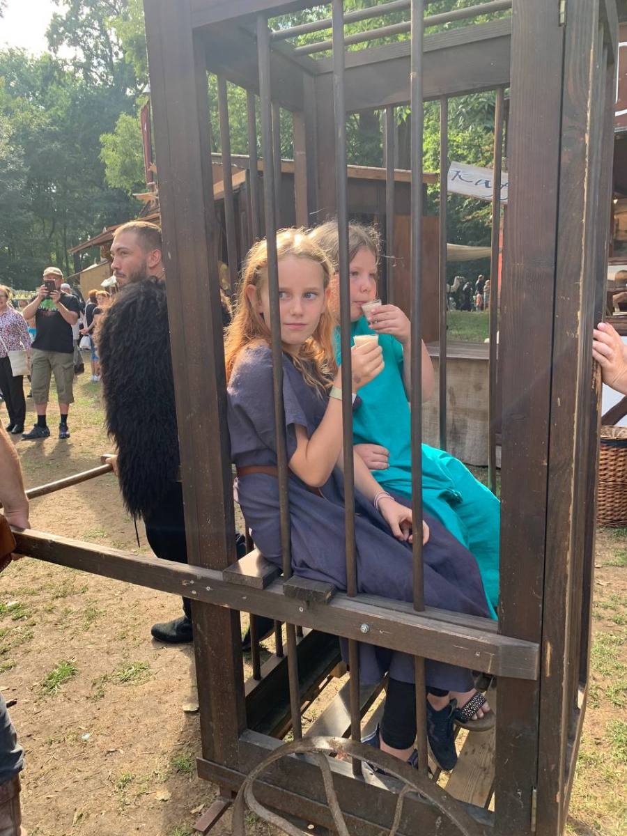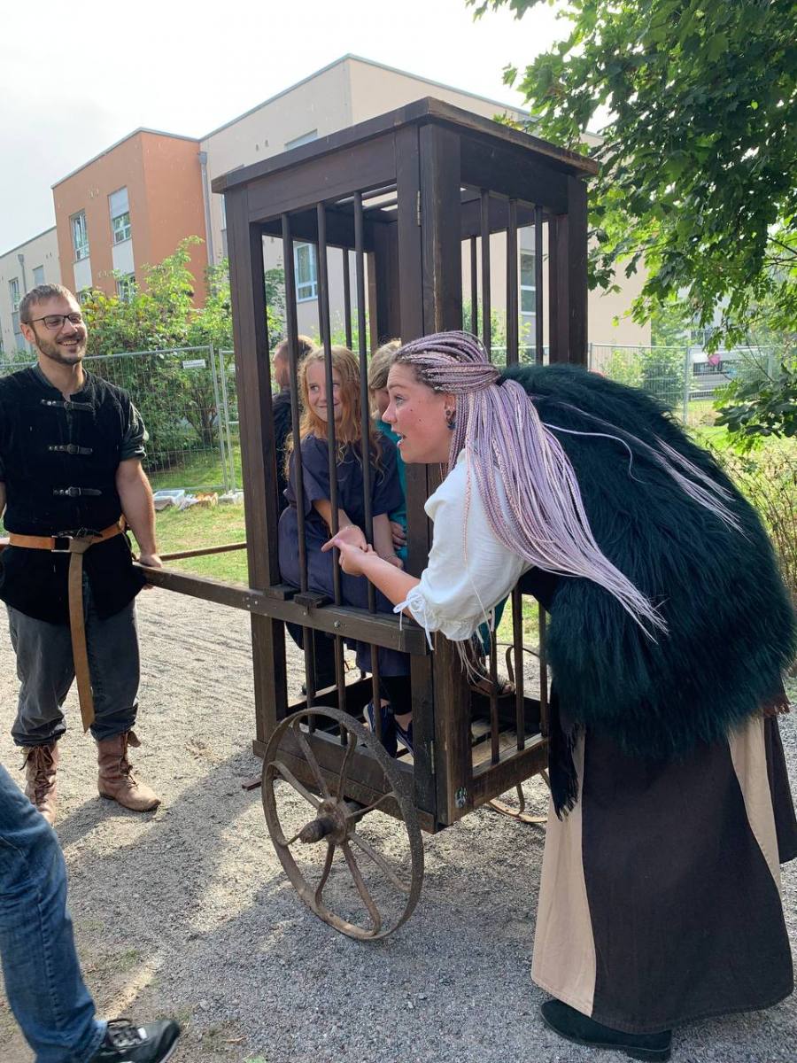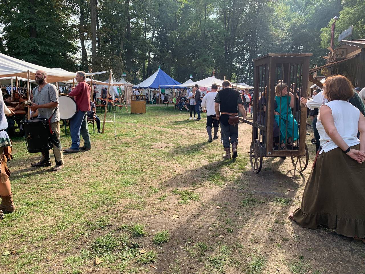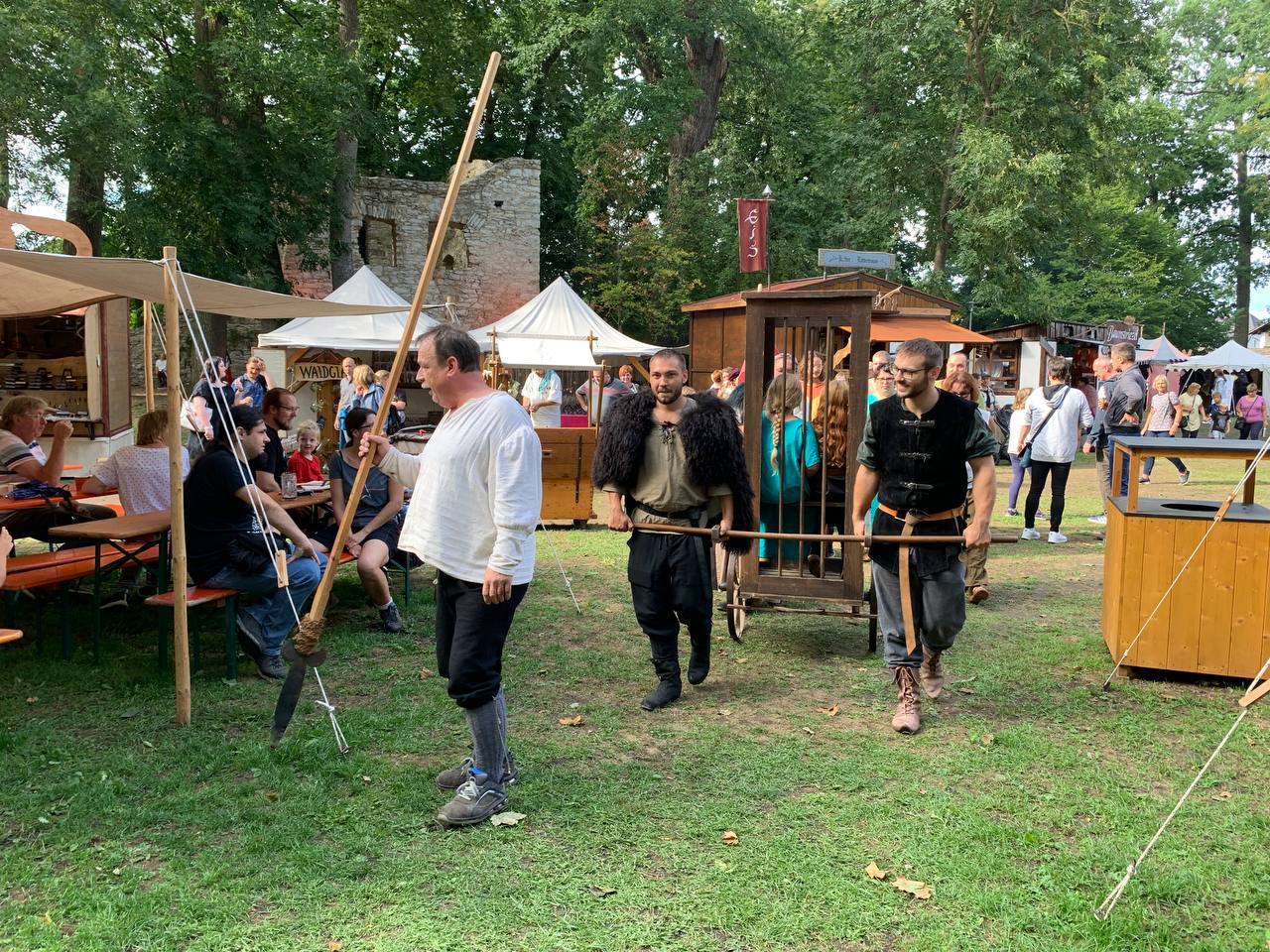 Auch wurde unsere Laune nur kurzzeitig aus den Angeln gehoben, als es am Freitag kurz um Marktbeginn einen Sturm mit Gewitter gab. Wir kamen mit einem großen Schrecken und einem dicken Ast eines Baumes auf unseren Zelten davon. Nicht auszudenken, was gewesen wäre, wenn eines der Kinder im Zelt gewesen wäre… Aber die Kinder und alle Erwachsenen waren während dem Sturm und Gewitter in Sicherheit! Sofort eilten mutige Helfer mit Axt und Sägen daher und befreiten unsere Zelte von dem schweren Ungetüm. Da möchte ich noch einmal meinen tiefsten Dank aussprechen! Auch für die tröstenden und beruhigenden Worte von Claudia aus selbigem Lager nebenan! Vielen Dank!