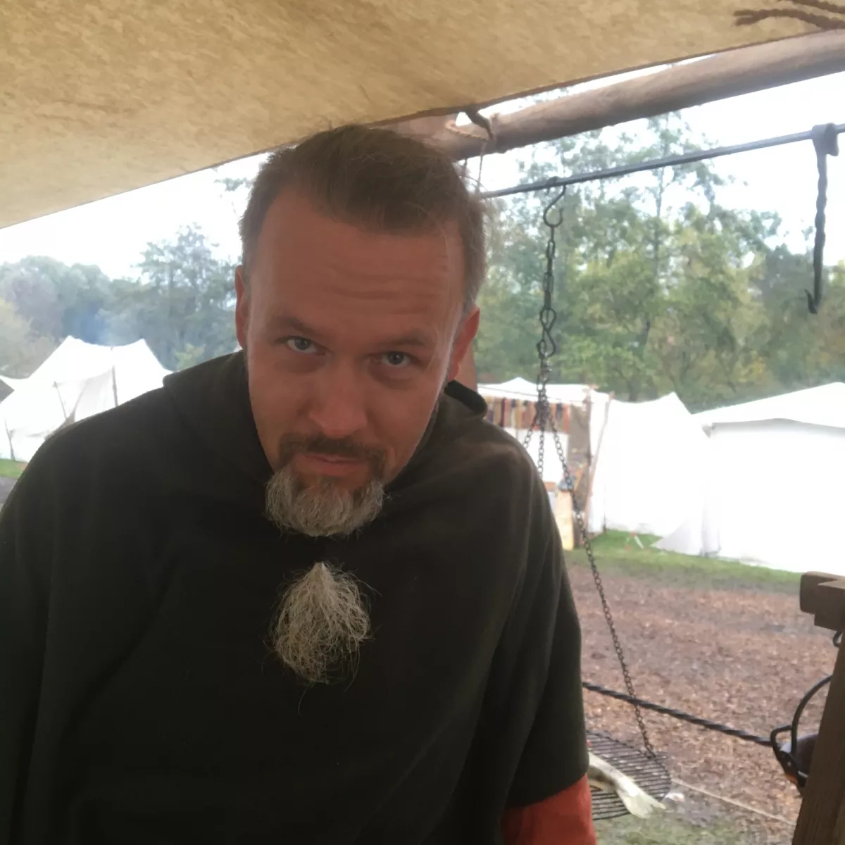 Sven Sven Gerdason, das Oberhaupt dieser kleinen aber feinen Sippe, ist immer gleich hilfsbereit zur Stelle. Ob handwerklich in holzigen Angelegenheiten oder ob am Kochtopf, er ist ein Macher und vor allem unser Fischer. Feuchtwangen 2019 Bild 6 von 19