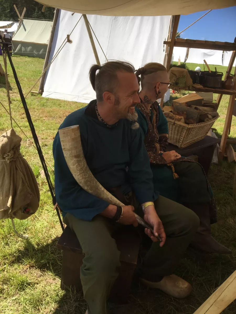 Sven Sven Gerdason, das Oberhaupt dieser kleinen aber feinen Sippe, ist immer gleich hilfsbereit zur Stelle. Ob handwerklich in holzigen Angelegenheiten oder ob am Kochtopf, er ist ein Macher und vor allem unser Fischer. Limes 2019 Bild 13 von 19